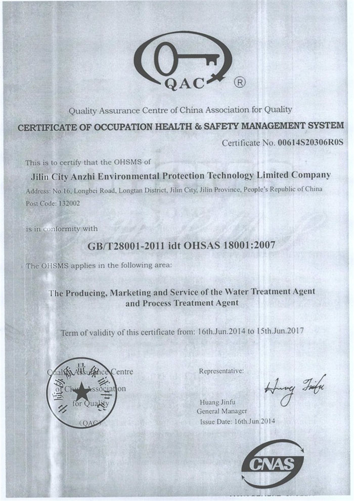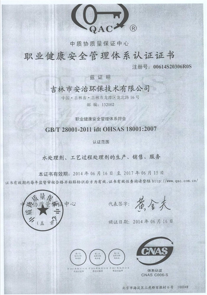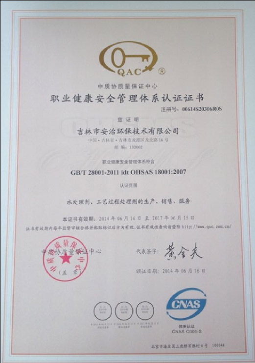 职业健康安全管理体系证书