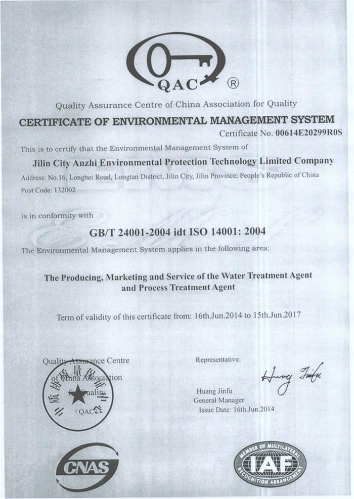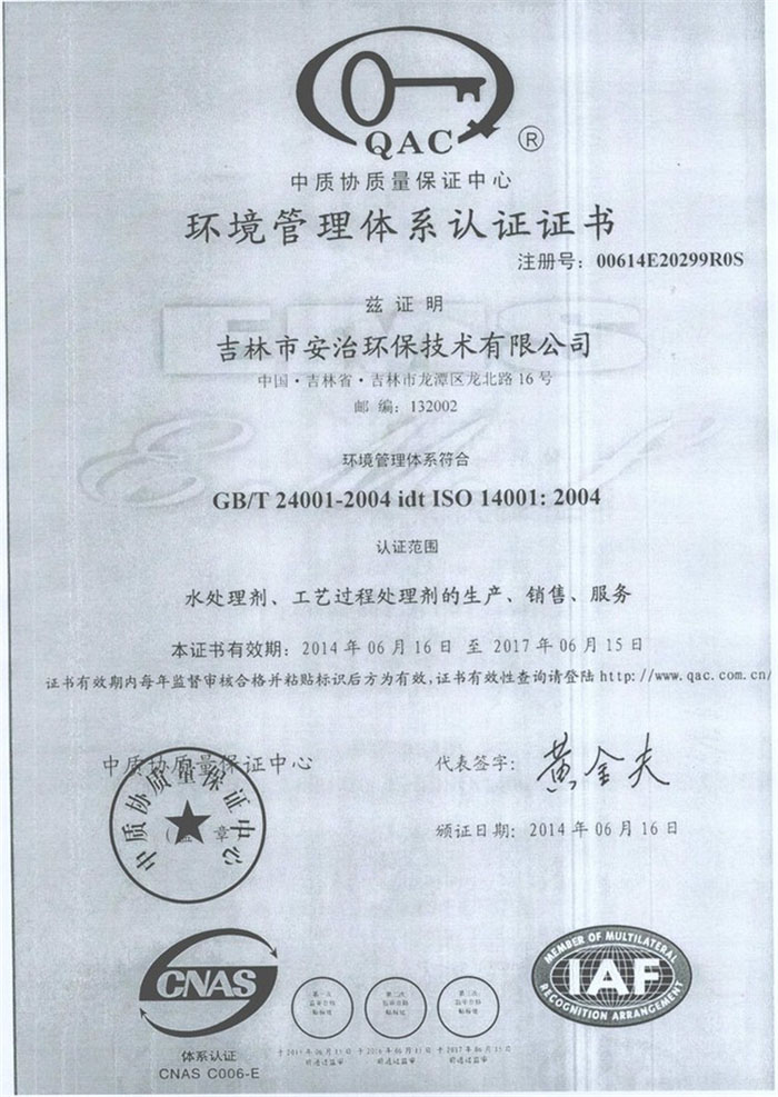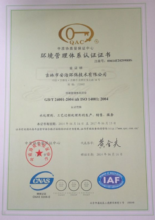 环境管理体系证书中文版
